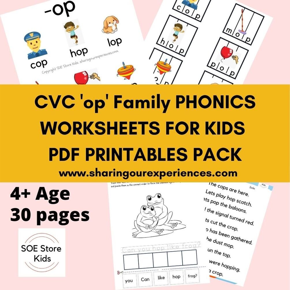 This downloadable worksheet pdf pack is for introducing "op" family words to kids. In contains multiple activities for early readers to learn how to read and write at family words.