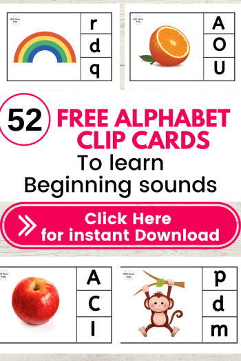 Looking for a way to teach Alphabet beginning sounds to kids or teaching kids how to associate Alphabet pictures for each letter? These free Alphabet picture clip cards are just perfect for teaching alphabets and planning a free activity for learning letter sounds.