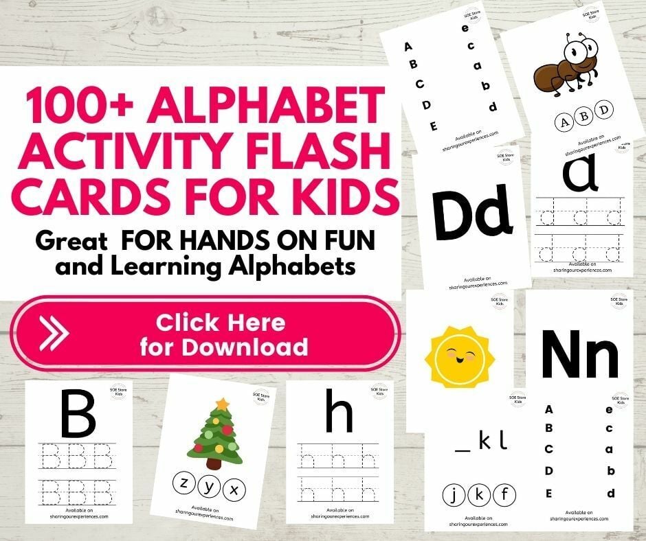 Alphabet Activity flashcards for kids printable pdf. Just print this pdf, Laminate, and cut to create wipe clean reusable Flashcards for kids.