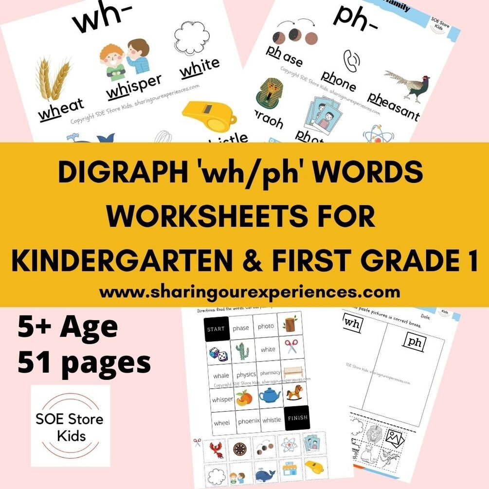 Digraph 'wh/ph' words worksheets for Kindergarten & First grade 1